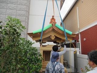 本堂全体の柱が細く、また外陣の柱の1本が折れているのが判ったので建て替える事になりました。
