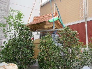 屋根瓦の撤去が終わり、瓦下地及び大破風廻り・桔木・雨傷みの梁の取り替えを行なっています。