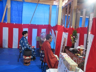 屋根の瓦工事が終わり、1月20日広間の御内仏前で上棟の法要が行われました。