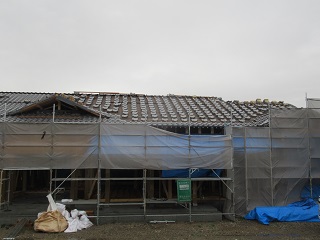 セメントプレス瓦で葺かれた屋根の葺き替え工事です。