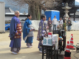 屋根の瓦工事が終わり、1月20日広間の御内仏前で上棟の法要が行われました。